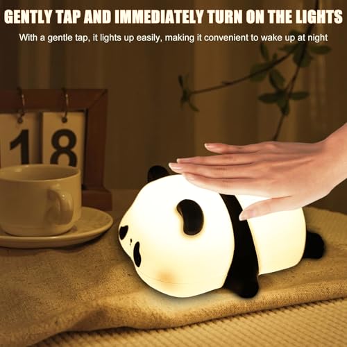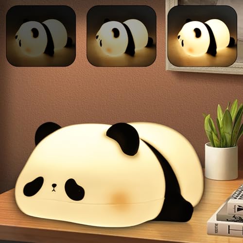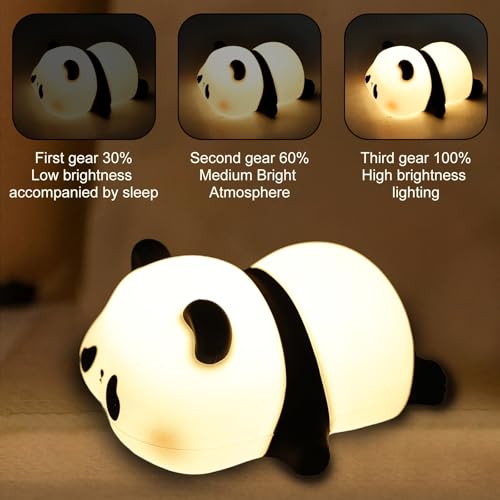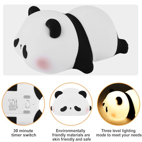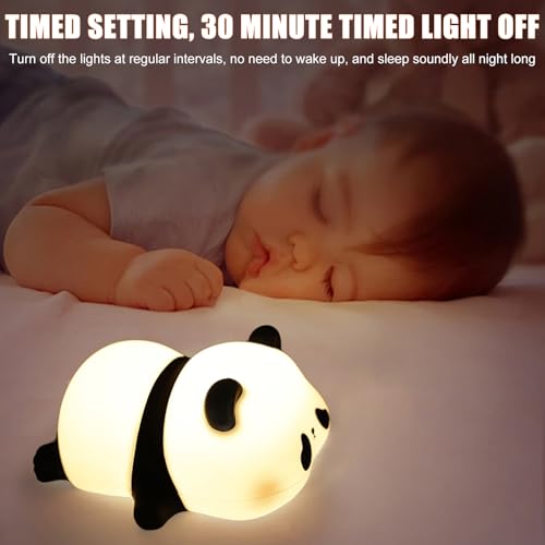 Asfrode - مصباح ليلي سيليكون بتصميم باندا مع 3 أوضاع إضاءة بتصميم قابل للتعتيم مع تايمر وتحكم باللمس قابل لإعادة الشحن بمنفذ USB لديكور غرفة الأطفال من اسفرود