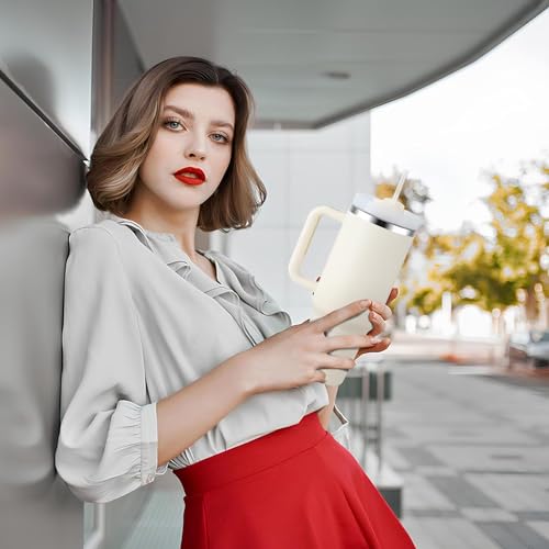 ASHASHA - كوب بغطاء ومقبض سعة 1.2 ل مع شفاطة من الفولاذ المقاوم للصدأ المعزول بتفريغ الهواء وقابل لإعادة الاستخدام للمياه والشاي المثلج أو القهوة ومناسب للسفر من اشاشاشا (عاجي)