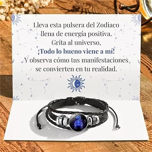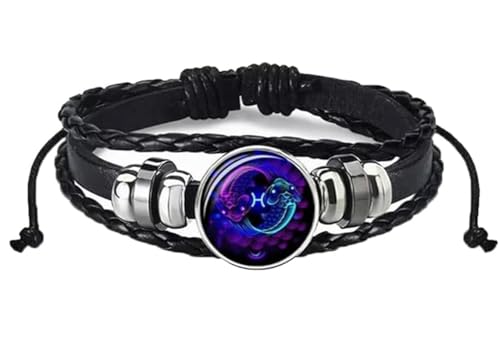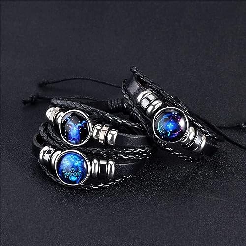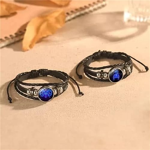Ashopfun - سوار من الجلد الصناعي بتصميم علامات زودياك من اشوب فن، مصنوع يدويا متعدد الطبقات وقابل للتعديل من 12 كوكبة زودياك للجنسين، هدايا مجوهرات زودياك تتوهج في الظلام للنساء والرجال