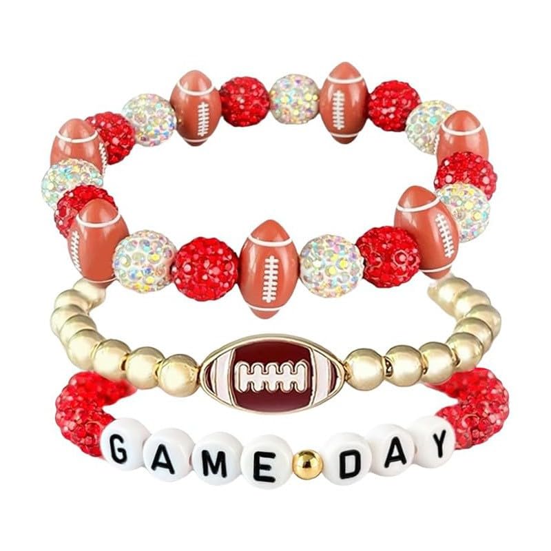Asiamist - Game Day Bracelet for Women Football Beaded Stretch Bracelets Stackable Sport Bracelet Football Mom Accessories Outfits Jewelry