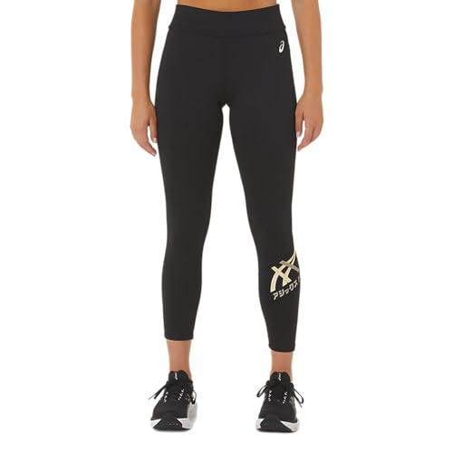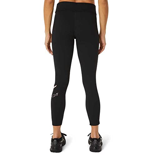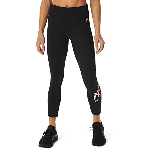 Asics - اسيكس سروال تايجر ضيق 7/8 للنساء، لون اسود ووردي، مقاس XL