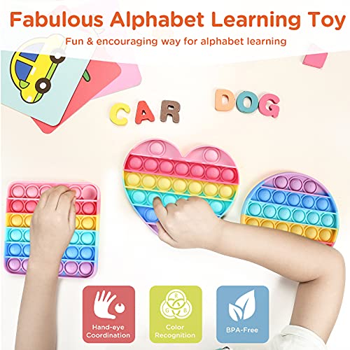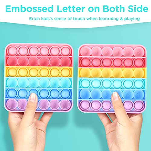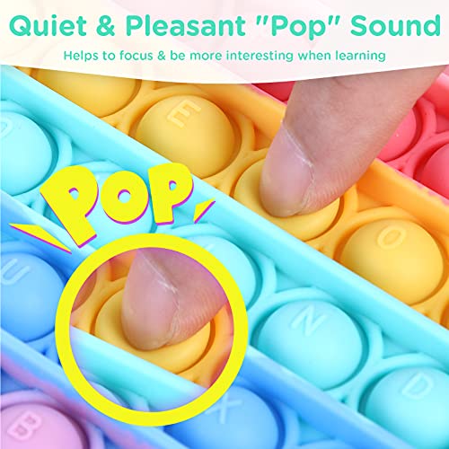 - لعبة التعلم الإبداعية: تُعد لعبة الفقاعات التعليمية الملونة المرنة والمتينة أداة تعليمية مثالية للأطفال في مرحلة ما قبل المدرسة لتعلم التعرف على الحروف وتهجئة الكلمات. إن وجود حروف الأبجدية على كل فقاعة يجعلها قيمة تعليمية رائعة للأطفال لممارسة مهاراتهم الإملائية وبناء كلماتهم، والتعرف أيضًا على الألوان المختلفة. استمتع بلحظات مرحة أثناء تعلم أشياء جديدة في الوقت ذاته.