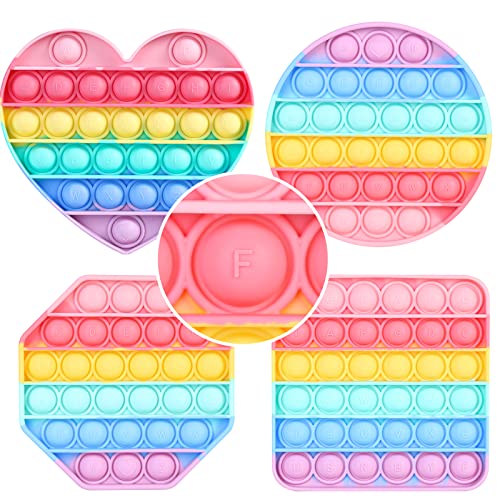 Asona - عبوة ألعاب حسية من ASONA Pop Fidget مع أحرف ، لعبة سيليكون بألوان قوس قزح بألوان الباستيل ، لعبة مواد تعليمية للتخلص من القلق والتوتر والتوحد هدية للفتيات والأطفال والمراهقين والبالغين (ماكارون 4 عبوا