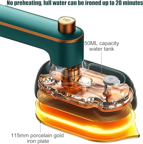 OVA - مكواة بخار محمولة باليد افقي ورأسي لكي الملابس من اسوول مع تسخين سريع، مقبض قابل للدوران، كي بخار/جاف للاستخدام في المنزل والسفر