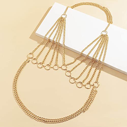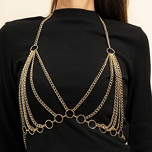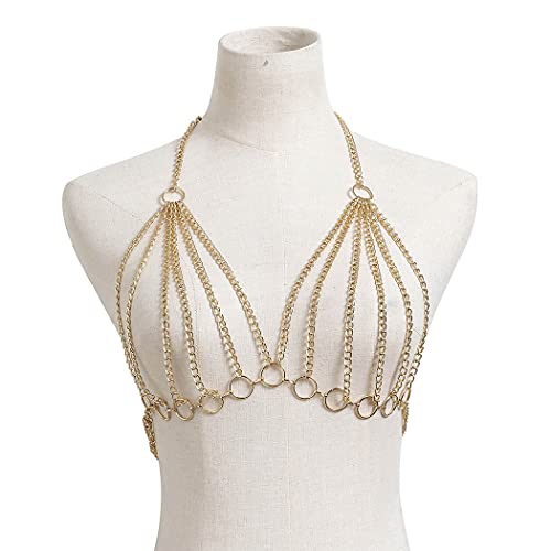 Asooll - حمالة صدر بشراشيب عتيقة من Asooll سلسلة بكيني للشاطئ بطبقات من حجر الراين وسلاسل خصر عصرية وسلسلة للجسم والبطن للحفلات والنوادي الليلية مجوهرات للنساء والفتيات (ذهبي)