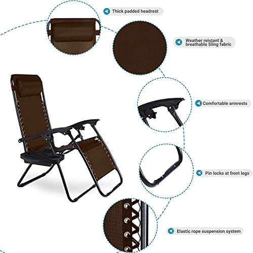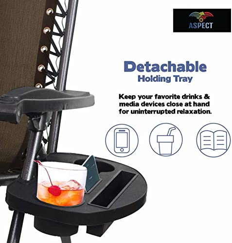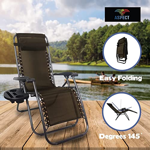 Aspect - اسبيكت كرسي زيرو جرافيتي، كراسي استلقاء للتشمس في الحديقة الخارجية، نسيج متين، كراسي حديقة قابلة للامالة مع حامل اكواب ومسند رأس وسادة - بني