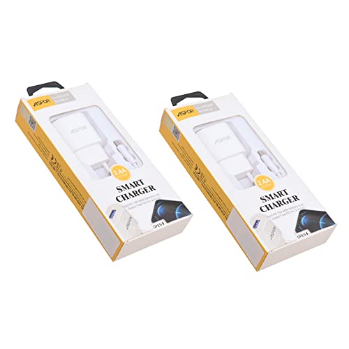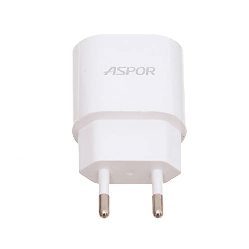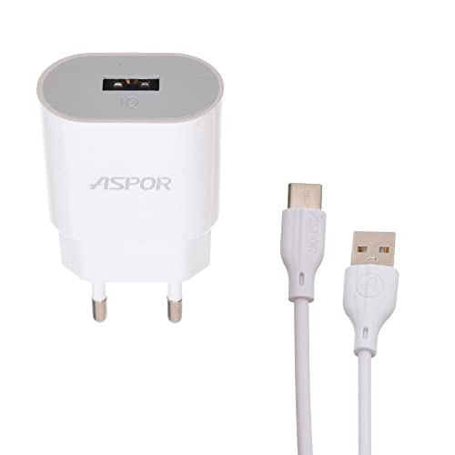 ASPOR - مجموعة شاحن سمارت 2 في 1 بطاقة مخرجة 2.4 امبير ومنفذ USB مع كابل بمنفذ نوع سي مكونة من قطعتين اسبور ابيض