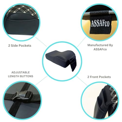 ASSAFCO - وسادة مسند ذراع للسيارة من الجلد اسافكو بتصميم مربع الاسفنج لون اسود - هافان