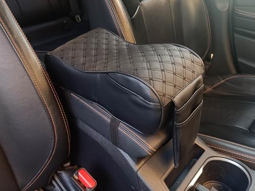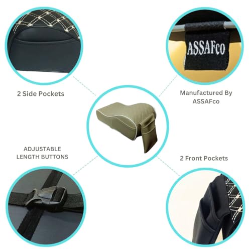 ASSAFCO - وسادة مسند ذراع للسيارة من الجلد اسافكو مصنوعة الفوم بنمط وين اسود