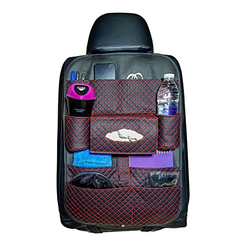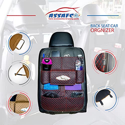 generic - منظم جلد صناعي فاخر لمقعد السيارة الخلفي من اسافكو لون اسود واحمر