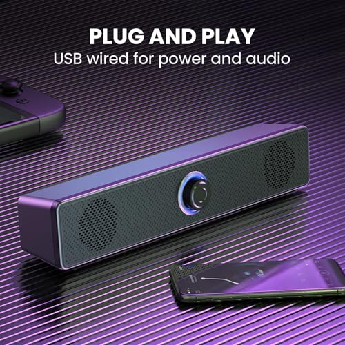 Assistrust - مكبر صوت ساوند بار سلكي يعمل بمنفذ USB من اسيسترست، مكبر صوت صغير تشغيل عبر منفذ AUX قطر 3.5 ملم، مكبر صوت لسطح المكتب