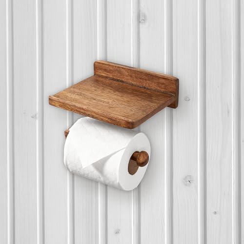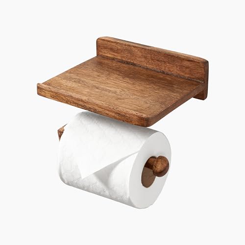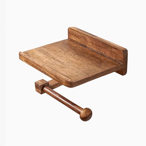 Assorted Collections - حامل بكرة تواليت ايه سي ال يثبت على الحائط - حامل بكرة تواليت مزدوج الوظائف مع منصة متحركة - ملحق حمام عصري بتصميم انيق (خشبي)