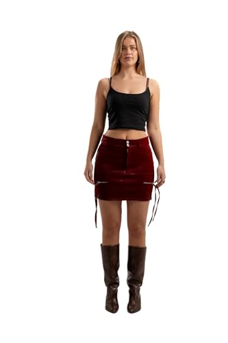 ASTK - جيبة قصيرة فرونت لاين للنساء من ايه اس تي كيه، لون بورجندي، مقاس L