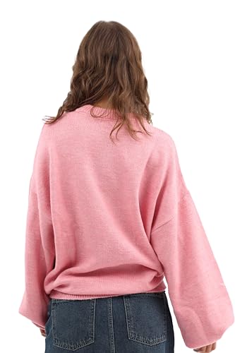 ASTK - كنزة صوفية من أستك برقبة كرو للنساء، قصة عادية وأكمام طويلة، لون وردي، مقاس كبير-كبير جداً