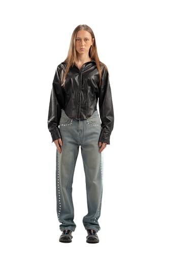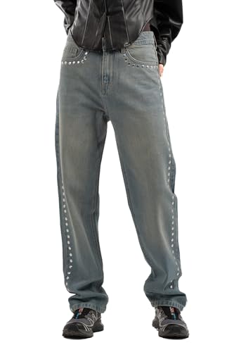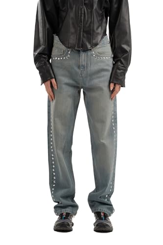 ASTK - بنطلون جينز بقصة ساق مستقيمة للنساء مزين بمسامير من ايه اس تي كيه