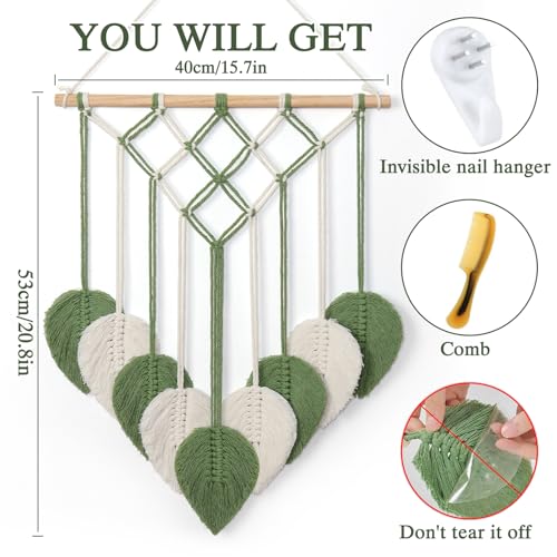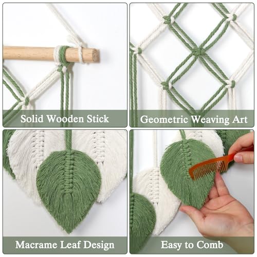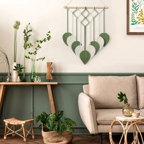 ASTNIC - بساط مكرمية للتعليق على الحائط بتصميم اوراق شجر خضراء وشراشيب من استنيك نسيج منسوج يدويا لديكور لغرفة النوم وغرفة المعيشة والمكتب والشقة اخضر وابيض
