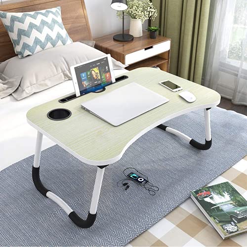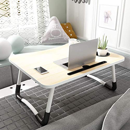 Astoryou - طاولة لاب توب، حامل قراءة نوت بوك وصينية تقديم الفطار والقراءة ومشاهدة الأفلام على السرير والكنبة بأرجل قابلة للطي وفتحة للأكواب من استوري، أبيض مابل WR13