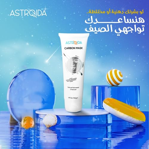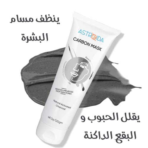 Astroida - ماسك الوجه كربون بالفحم النشط الطبيعي ومضادات الاكسدة يزيل الشوائب من مسام البشرة والجذور الحرة ويحمي حب الشباب واكسدة يترك لمدة 10 دقائق 120 جرام 4 اونصة استرويدا كريم