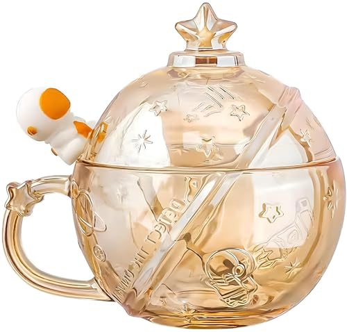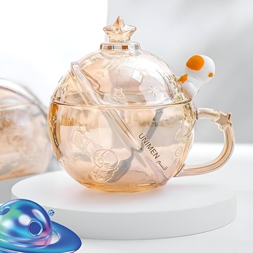 Generic - مج للقهوة بتصميم رائد فضاء، كوب سيراميك مع ملعقة وغطاء، تصميم مرح بموضوع الفضاء، مناسب لمحبي الشاي والماء واللبن