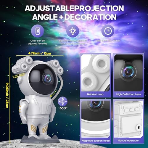 Generic - جهاز عرض ضوء رائد فضاء مع سديم، جهاز عرض نجوم مجرة رائد فضاء، ضوء ليلي مرصع بالنجوم، مؤقت وجهاز تحكم عن بعد، جهاز عرض سقف غرفة النوم، افضل الهدايا للاطفال والكبار