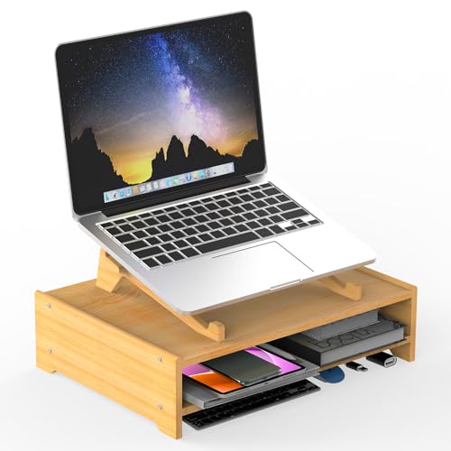 • 【هيكل قوي يدوم طويلاً:】مصمم من مواد خشبية فاخرة، يتميز حامل اللاب توب هذا بهيكل قوي يضمن متانة تدوم طويلاً. يوفر هيكله الصلب أساسًا ثابتًا لجهاز اللاب توب أو التابلت الخاص بك، مما يعد بالأمان والموثوقية لأجهزتك. لا تضيف اللمسة النهائية الأنيقة جاذبية جمالية فحسب، بل تعكس أيضًا جودتها الدائمة على أي مكتب أو مكان عمل.