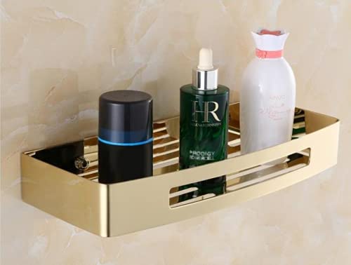 A ASTTONUS - سلة مستطيلة الشكل من الستانلس ستيل 304 متعددة الاغراض تثبت على الحائط استونوس® للمنزل والمكتب والحمام والمطبخ رف ذهبي لامع عبوة قطعتين