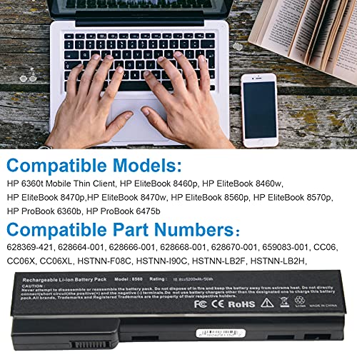 ASUNCELL - بطارية لابتوب CC06 من اسونسيل متوافقة مع اتش بي ايليت بوك 8470w 8460p 8460w 8470p 8560p 8570p 6360b 6460b 6465b 6470b 6475b 6565b 6570b 628664-000b 1,6 28 66 8-001 CC06X 6360t، 11.1 فولت