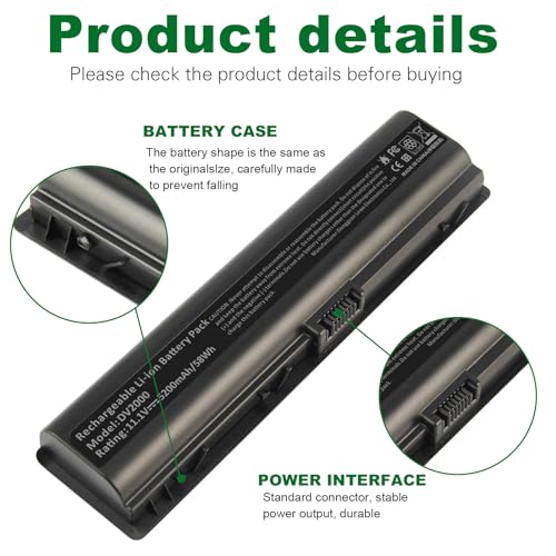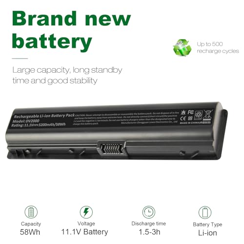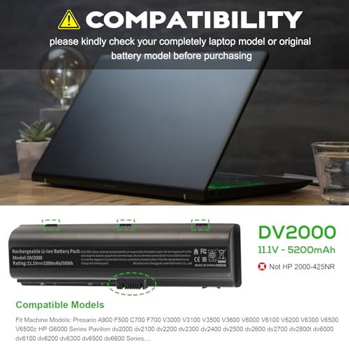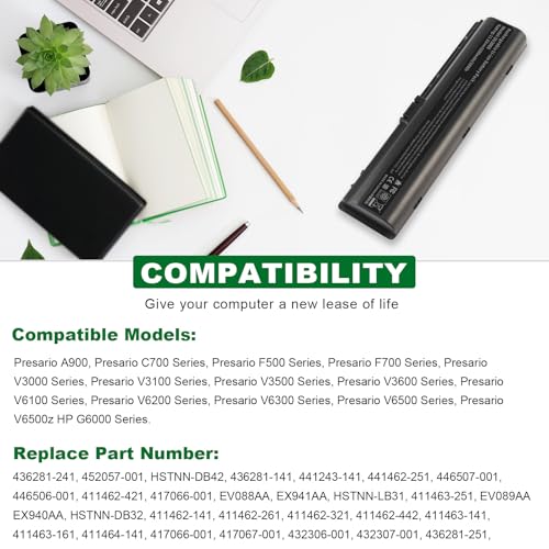 ASUNCELL - بطارية لابتوب من اسونسيل متوافقة مع اتش بي بافيليون DV2000 DV2200 DV2300 DV2500 DV6000 DV6100 DV6500 DV6700 بريساريو A900 C700 F500 F700 V3000 V3500 600 Vسلسلة 6100 V6500 G6000 11.1 فولت