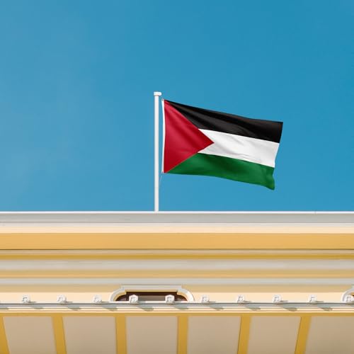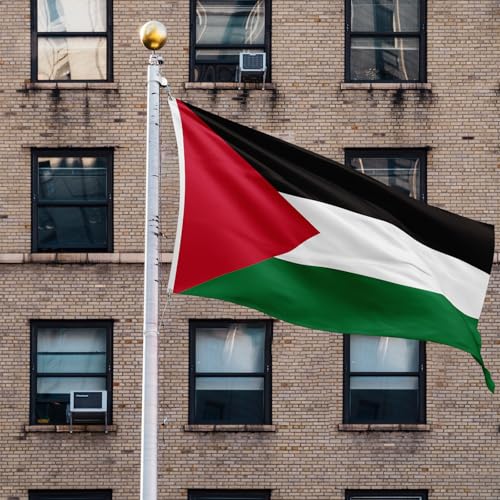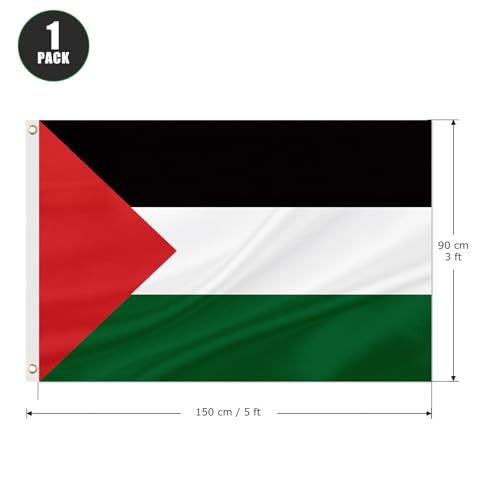 ASUNO - علم فلسطين، راية وطنية فلسطينية من البوليستر مع حلقتين نحاسيتين، لون حيوي مزدوج الجانب مقاوم للبهتان للحديقة الخارجية والفناء والحديقة من اسونو، 90 سم× 1.5 م