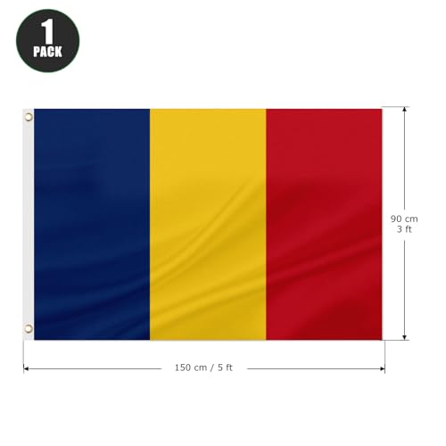 ASUNO - علم رومانيا من اسونو، راية وطنية رومانية من البوليستر مقاس 3 × 5 قدم مع حلقتين نحاسيتين مزدوجة الجوانب بألوان زاهية مقاومة للبهتان للحديقة الخارجية والفناء