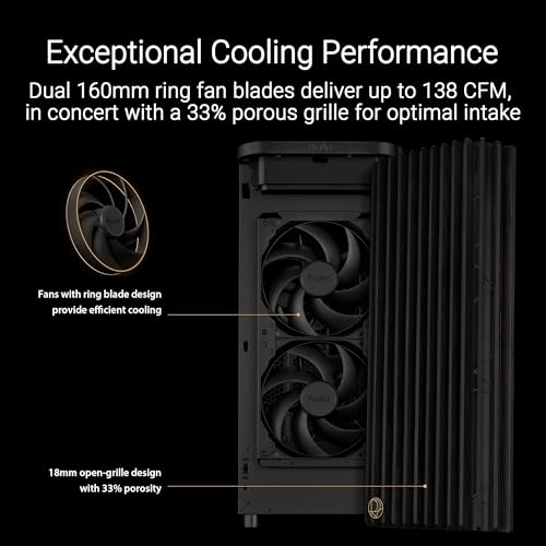 ASUS - هيكل كمبيوتر ايه تي اكس قائم متوسط الحجم PA401 برو ارت من اسوس، لوحة أمامية خشبية من زجاج مقوى، لوحة جانبية 2 × 160 ملم شفرة حلقية وقفل زر المروحة