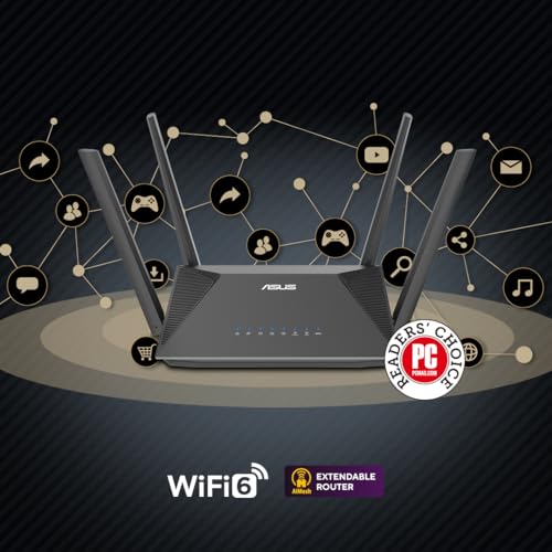 ASUS - راوتر RT-AX52 (AX1800) مزدوج النطاق شبكة محلية لاسلكية WLAN 6، حماية فورية برمجة أمان للأطفال، شبكة في بي ان مدمجة، متوافق مع اي ميش من اسوس