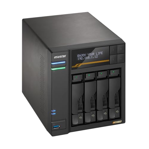 Asustor - اسوستور / حزمة ذاكرة ناس 18 تيرابايت من ديسك تك: خادم لوكرستور 4 الجيل الثالث AS6804T مع قرص صلب ساتا 4x4TB و2x1TB NVMe M.2 SSD، ذاكرة RAM 16GB، مزدوج 10GbE ومنافذ LAN مزدوجة 5GbE