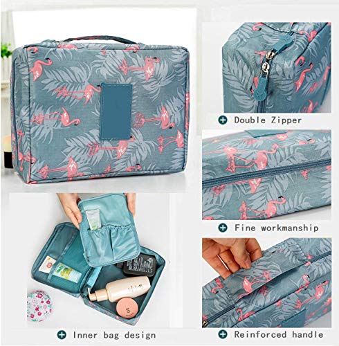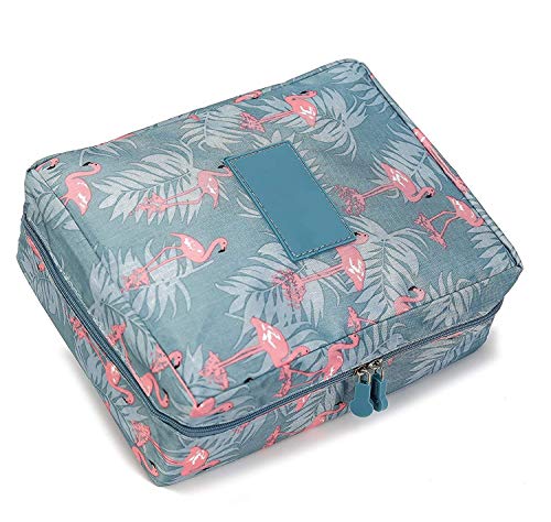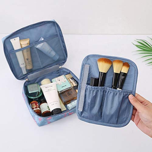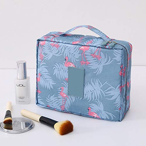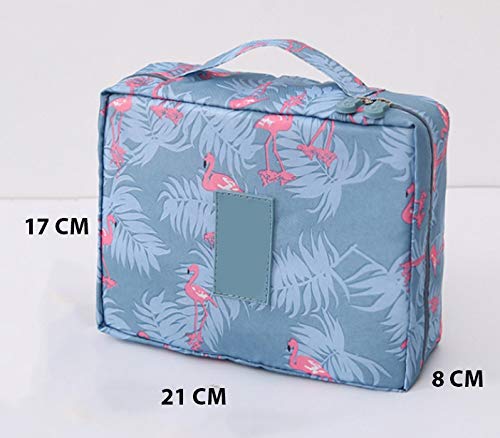 ASUVI - شنطة سفر لادوات الزينة من اسوفي للنساء، شنطة مكياج محمولة بسعة كبيرة مثالية للسفر والاستخدام اليومي، لون ازرق، فلامنجو ازرق، 21 × 17 × 8 سم، اكسسوارات السفر