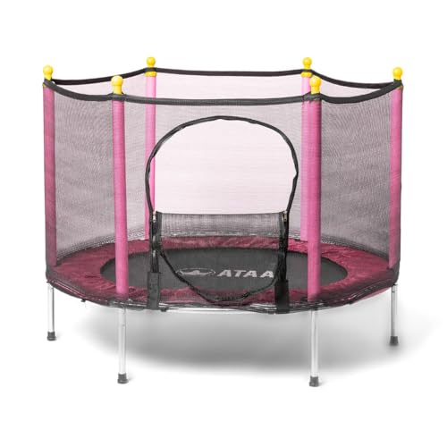 ATAA - ترامبولين سالتي 140 للأطفال - ترامبولين للأولاد والبنات، قطر 1.40 م، معزز بشبكة أمان وحماية بالفوم، للاستخدام الداخلي أو الخارجي من عطاء، لون وردي