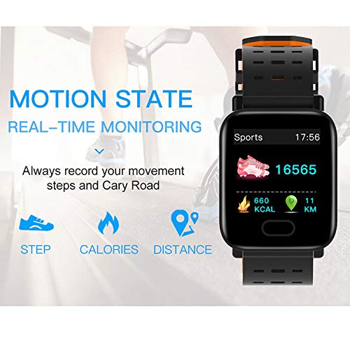 Atcone - ساعة ايه 6 ذكية مقاومة للماء بتصنيف IP67 لمراقبة معدل ضربات القلب وبسوار معصم ومزودة بنظام اندرويد وiOS من اتكون، لون أزرق