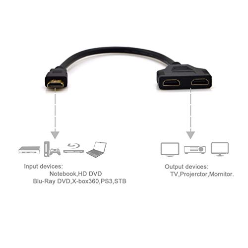 - كابل مقسم HDMI هذا مثالي لتوصيل جهاز واحد متوافق مع HDMI (اتش دي - دي في دي، بلو - راي دي في دي، اكس بوكس، اكس بوكس 360، بلاي ستيشن 3، اس تي بي، نوت بوك، تلفزيون سوني HD)