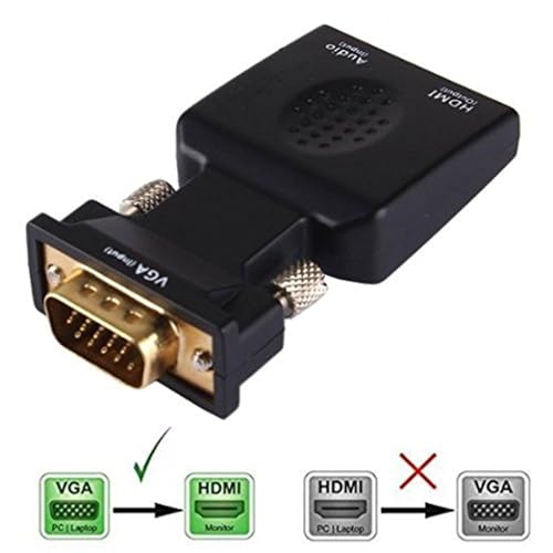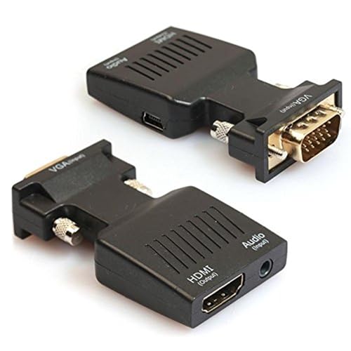 atdaraz - محول فيديو VGA ذكر الى HDMI انثى 1080P مع صوت 3.5 ملم (اسود) محول VGA الى HDMI من اتداراز