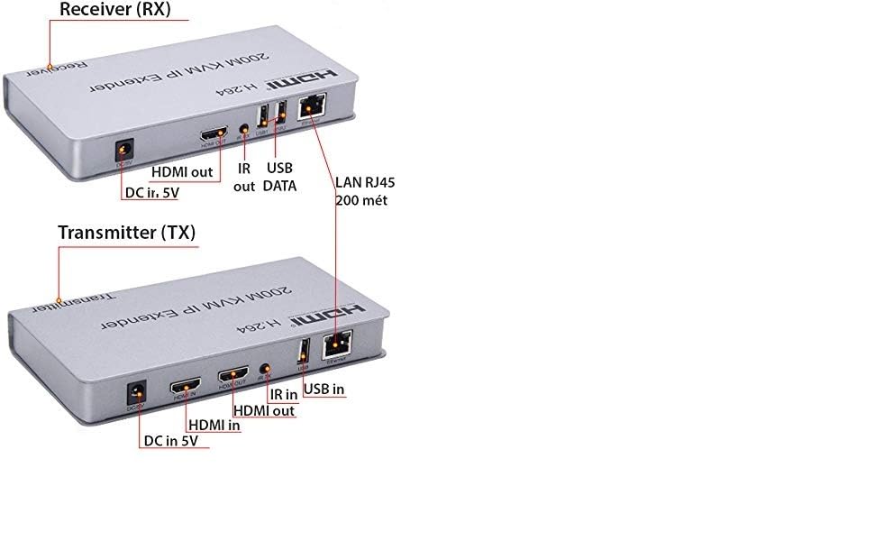 atdaraz - موسع HDMI كيه في ام اي بي بطول 200 متر من اتداراز، جهاز ارسال عبر بروتوكول الانترنت ار جيه 45 ايثرنت كات 6 6 ايه 1 تي اكس الى 20 ار اكس واتصال كاسكيد وكيبورد USB وماوس فوق UTP/STP H.264 (TX+RX)