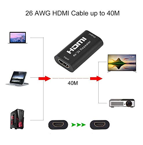 - يمكن لمكرر HDMI بدقة 4 كيه × 2 كيه تمديد إشارة HDMI الخاصة بك بسهولة، فهو يوسع نطاق إشارة HDMI عن طريق فك تشفيرها ثم تجديدها حتى دقة 4 كيه من معظم مصادر HDMI باستخدام كابلات HDMI الموجودة.