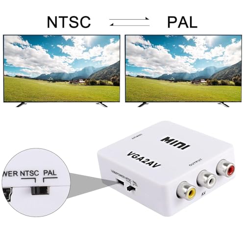 atdaraz - محول إشارة في جي ايه من الكمبيوتر إلى التلفزيونات القديمة كومبوزيت ايه في ار سي ايه مع كابل طاقة USB محول صوت وفيديو عالي الدقة 1080 بكسل من الكمبيوتر إلى التلفزيون وجهاز الاستقبال من اتداراز