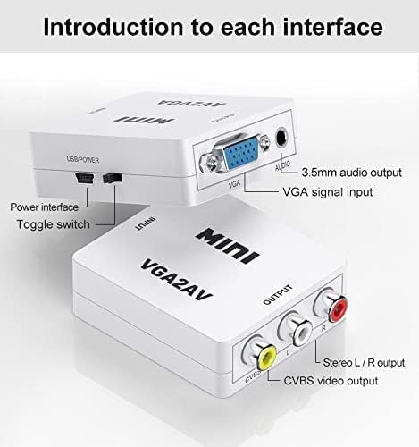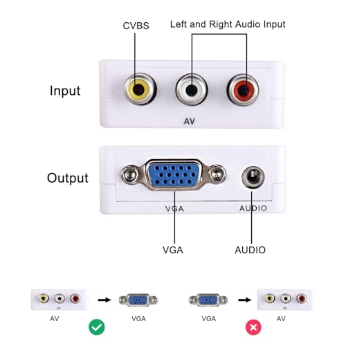 - خاصية التوصيل والتشغيل: مدخل VGA إلى مخرج ايه في، قم بالتوصيل والتشغيل، دون الحاجة إلى برنامج تشغيل؛ يوفر معالجة متقدمة للإشارة بدقة عالية ولون ودقة وتفاصيل، مع الحفاظ على وضوح الصورة واستقرارها مع وظيفة تقليل الضوضاء.
