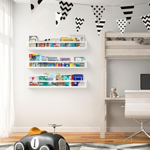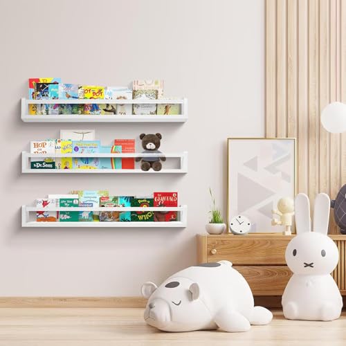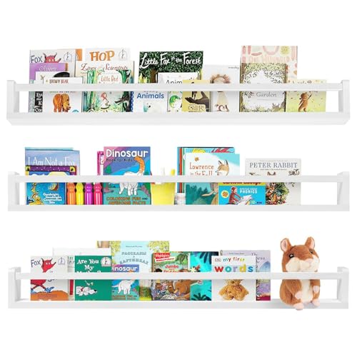 ATDORO - أرفف كتب عائمة تثبت على الحائط مقاس 60 سم، مجموعة من 3 أرفف خشبية صلبة للكتب لغرفة الأطفال والألعاب والتخزين والديكور من اتدورو