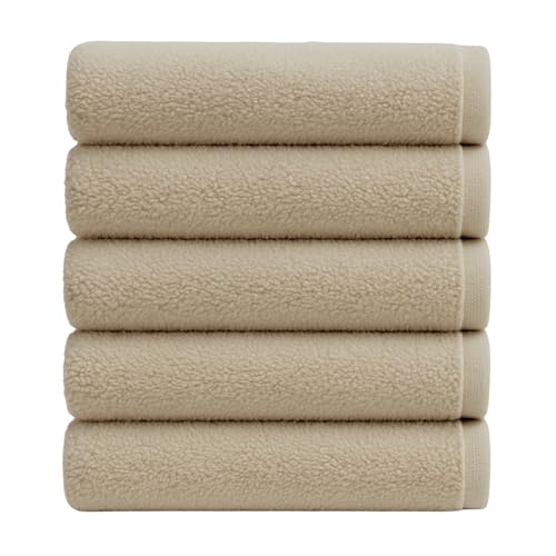 ATEN Homeware - فوط حمام من القطن المصري مقاس 30 × 30 سم، مناشف وجه فندقية فائقة النعومة وعالية الامتصاص وسريعة الجفاف من اتين هوم وير، طقم من 5 قطع (كافيه)
