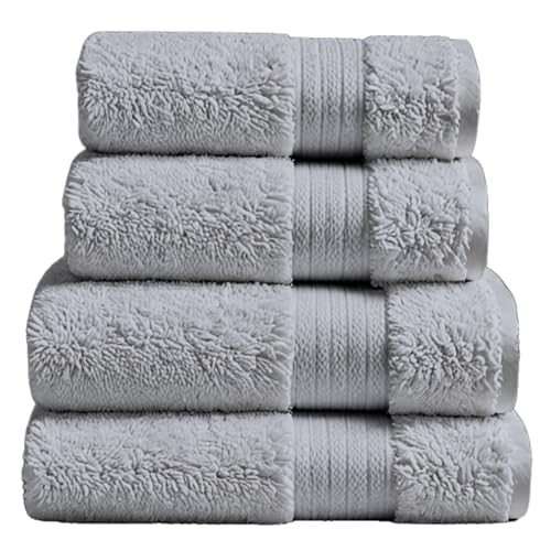 ATEN Homeware - منشفة حمام من أتين هوموير مصنوعة من القطن المصري، لون رمادي، مقاس كبير جداً، طقم من 4 قطع، سريعة الجفاف وفائقة الامتصاص