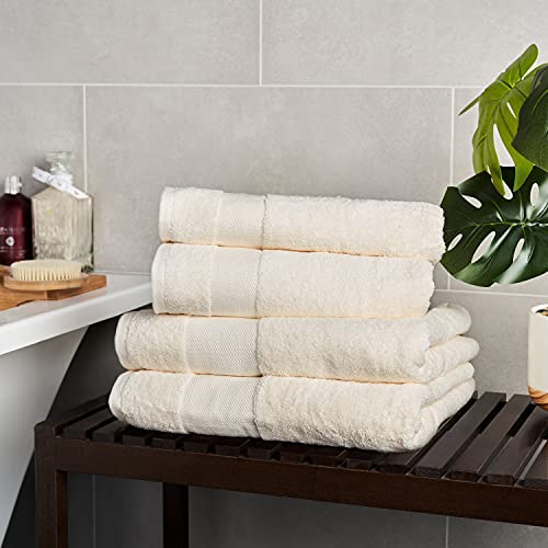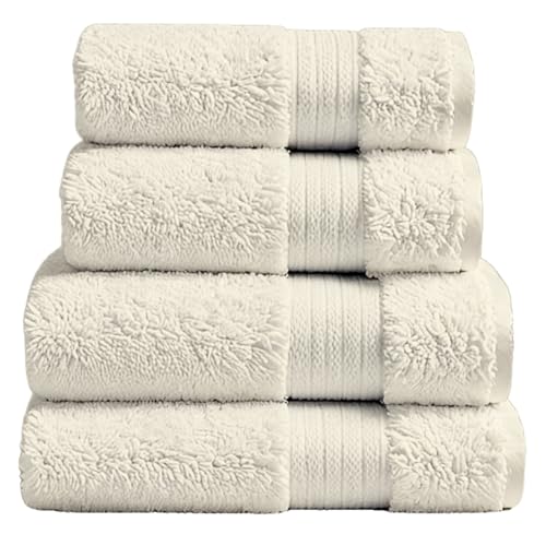 ATEN Homeware - فوط حمام من القطن المصري سوبريم من اتين هوم وير، فوط فائقة النعومة عالية الامتصاص معتمدة من اويكو-تكس، صنعت في مصر، مجموعة من 4 قطع، 2 فوطة حمام كبيرة و2 فوطة يد، لون كريمي