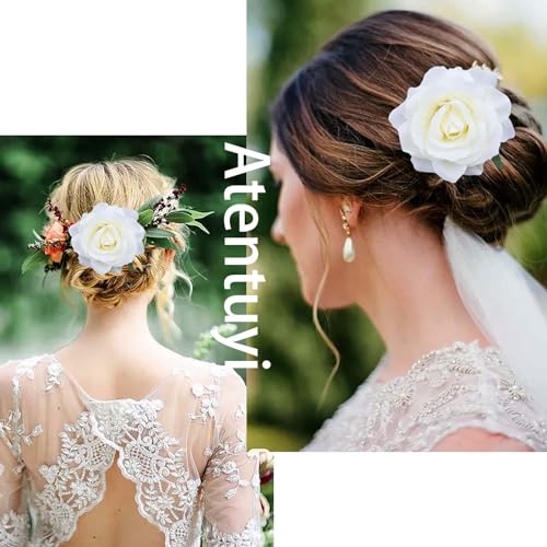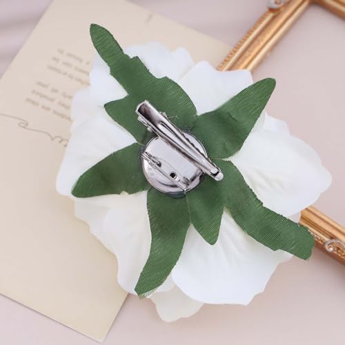 Atentuyi - دبوس بروش بتصميم بوهو كبير على شكل زهرة مع مشبك شعر، اكسسوارات شعر بتصميم زهور للعرائس ووصيفات العروس للحفلات الراقصة من اتينتوي، لون فضي وزهرة بلون أبيض