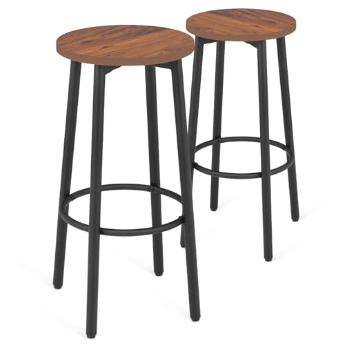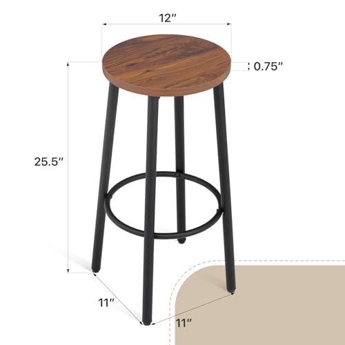 Athena Collection - مجموعة كراسي بار من اثينا كولكشن، مقاعد بار بارتفاع 25.5 انش بدون ظهر مع ارجل معدنية ومسند للقدمين، مقاعد بار خشبية للمنزل والمطبخ والمنضدة، بني