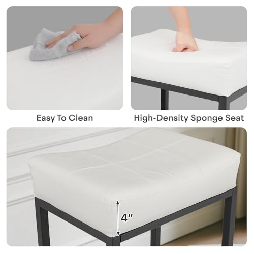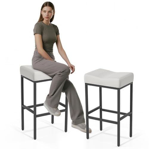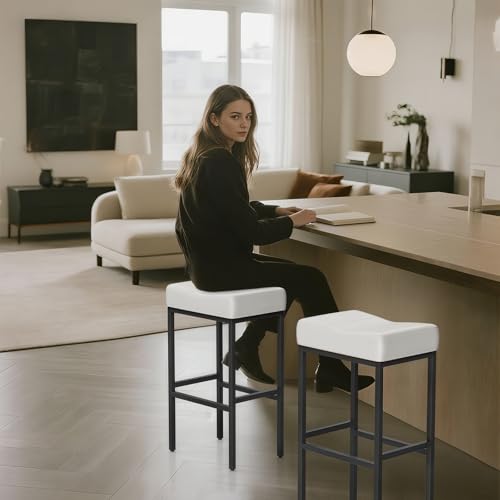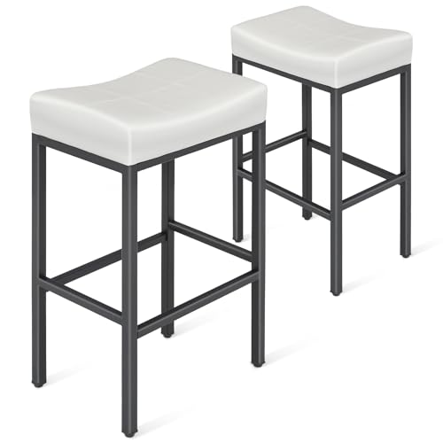 Athena Collection - كراسي بار مناسب للكاونتر، عصرية بمقعد سرج منجد مع هيكل معدني ومسند قدمين لجزيرة المطبخ وبار المنزل، من أثينا كولكشن عدد 2، بارتفاع 79 سم باللون الأبيض