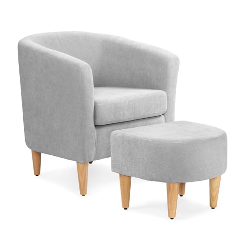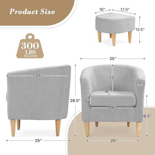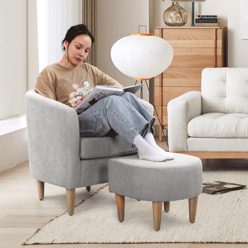 Athena Collection - كرسي برميل بتصميم أسطواني حديث مع مسند للقدمين من اثينا كولكشن، كرسي مريح للقراءة من الفرو للبالغين، كرسي بذراعين منجد مريح مع مسند للقدمين لغرفة المعيشة وغرفة النوم والمساحات الصغيرة، رمادي